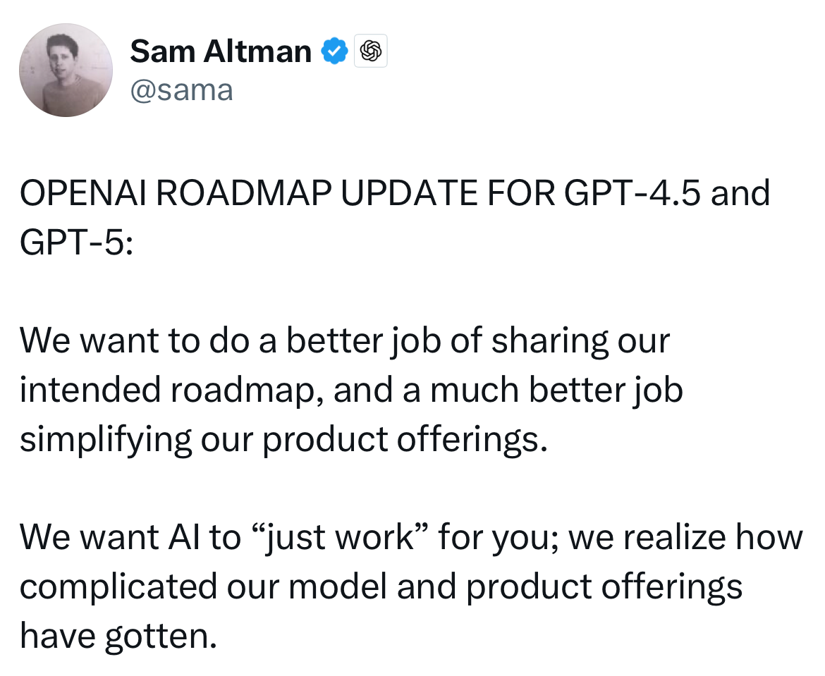 OpenAI’s CEO Sam Altman recently announced exciting updates to its product roadmap, aiming to streamline its offerings and deliver a more cohesive, user-friendly AI experience. In a series of tweets, Altman outlined plans for GPT-4.5 and GPT-5, emphasizing the company’s commitment to unifying its technologies and eliminating complexity. The updates reflect OpenAI’s mission to make AI “just work” for users, moving away from fragmented tools and toward a single, adaptable system.